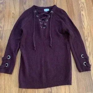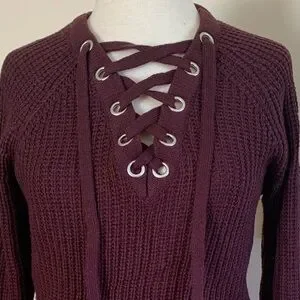 URBAN HERITAGE burgundy Lace Up Knit Sweater S