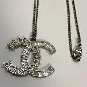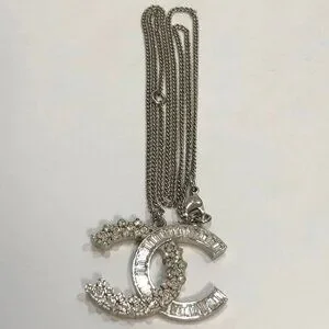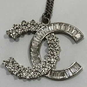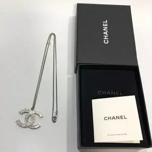 CHANEL CC Logo Rhinestone Pendant Necklace 24" Silver Tone B19V Auth w/Box D-m11