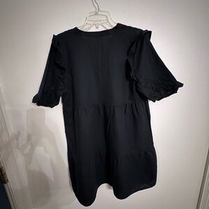 This cute black dress from Goodthreads features a stylish peplum design with ruffled short sleeves, offering a chic and feminine touch. The V-shaped neckline and soft fabric ensure a comfortable and flattering fit, making it a versatile addition to any wardrobe.