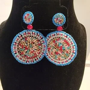 Beaded Multicolor Medallion Disc Dangle Earrings