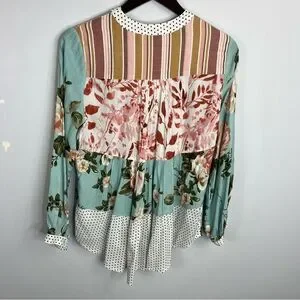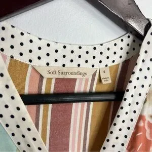 Soft Surroundings Size Small Mixed Print Button Boho Floral Dot Blouse Top KK15