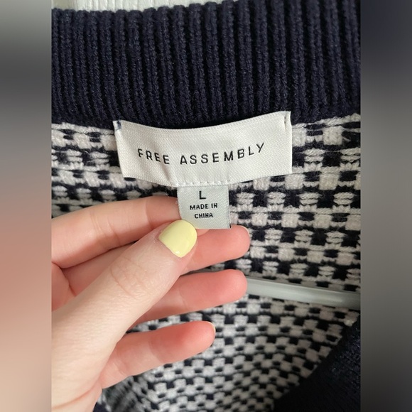 Never worn. Navy and white cardigan with gold buttons and pockets. Size large fits more like a medium.