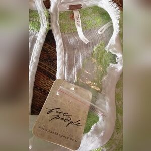 Free People Edie Embroidered Top White and Green Combo Size Large New With Tags