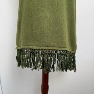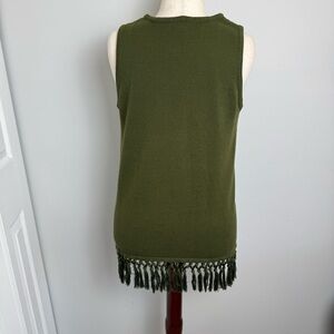 Stylish olive green sleeveless top with fringe detailing. Perfect for casual outings. In excellent condition!