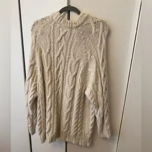 Zara Cream Cable Knit Chunky Sweater size medium. very long and thick/heavy material