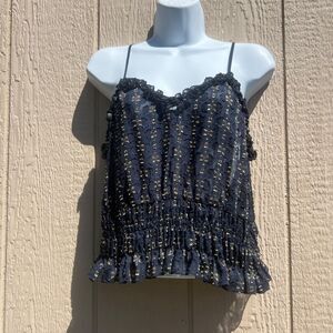 NWT Womens H&M Spaghetti Strap Top Crop Blouse Navy Blue Size 10 EU 40