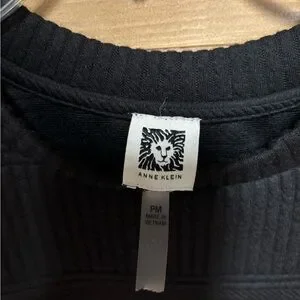 Elegant black textured knit top with puff sleeves. Perfect for any occasion.