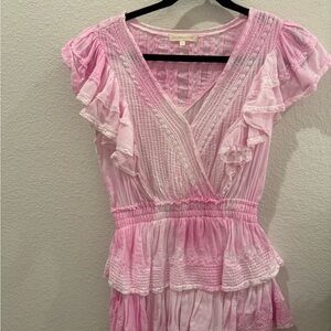 Embrace elegance with this pink ruffled top. Perfect for any occasion, it offers a flattering fit and stylish design. In very good condition!