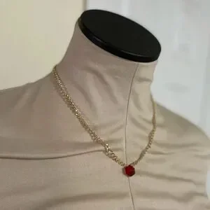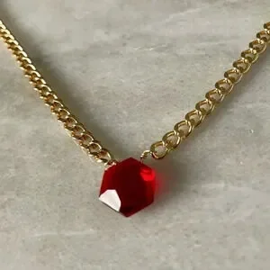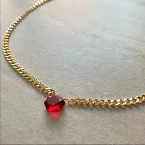Garnet gemstone on a 16” 22k gold electroplated gold thick chunky curb chain necklace. Includes a lobster claw closure and Estrella & Luna jewelry tag. Last four pictures are mine and item you will receive.