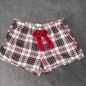 Hollister Sleep Plaid Women's M PJ Shorts with Red Satin Bow Holiday Festive
