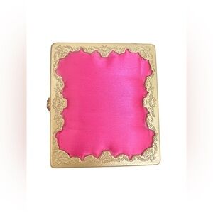 Elegant gold jewelry box with pink accents. Perfect for storing treasures.