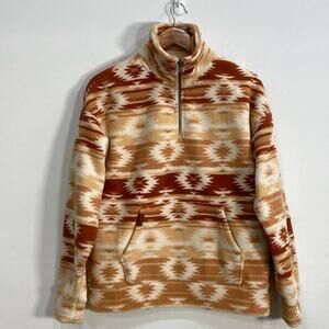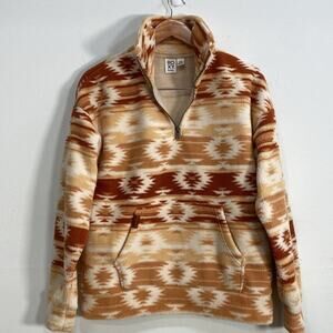 Roxy Half Zip Fleece Sweater Kangaroo Pockets XS Southwestern Print