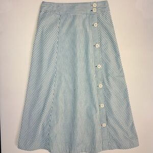 Chic and stylish, this striped blue skirt is perfect for any occasion. Its elegant design adds a touch of sophistication to your wardrobe.