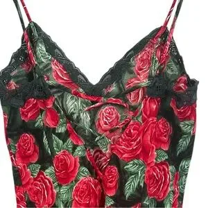 🌹 Vintage 90’s Victoria’s Secret Gold Label rose print satin slip mini dress with sexy lace up back detail 🌹
