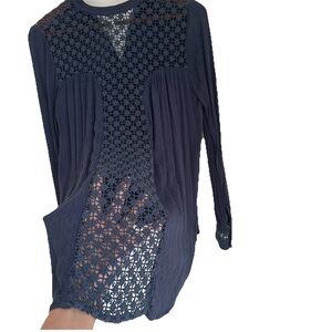 Free People Shirt Size XS Blue Tunic Crochet Lace Back Lagenlook Cottagecore