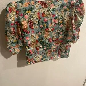 Zara Printed Floral Satin Blouse W/ Puff Sleeves Size Medium