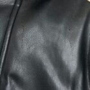 Jacket has several nicks on the left side as shown in the photos. The material has a glimmer to it. It has been cleaned. Please see photos for details and measurements.