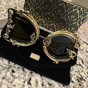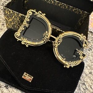 Elegant gold and black sunglasses with a luxurious design. Perfect for adding a touch of glamour to any outfit.