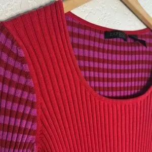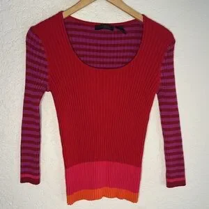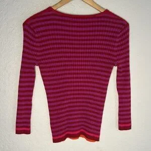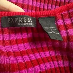 Vintage Express World Brand Ribbed Stripe Sweater Y2K 90s Red Pink Long Sleeve