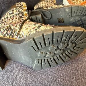 Step out in style with these chic women's tweed ankle boots. Featuring a striking black and multicolor design, these boots are perfect for any occasion. Enjoy comfort and elegance with every step. Worn only once, in excellent condition.