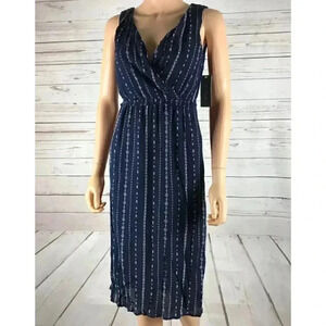 Navy Blue Printed V-neck Surplice Midi Dress NWT XS