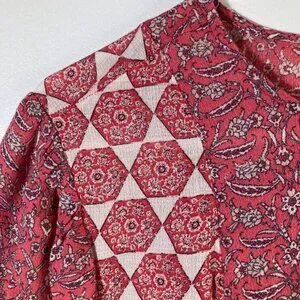 Womens Lucky Brand Short Sleeve Blouse Peep Hole Front XL Orange Cream XL Viscos