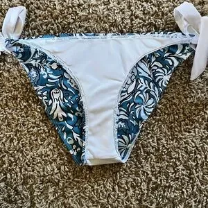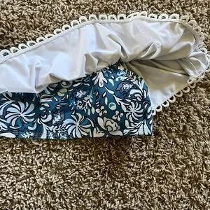 Off-shoulder bikini with floral design. Features removable pads. Size small. Like new. No rips or stains. Smoke free/clean home.