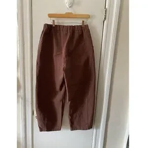 These are the pants we love to live in! She has thoughtful design details like an elastic high waist that gives you a room to breathe, slightly curved leg shape, cropped length to show off your favorite socks and shoes, unique side panels and deep pockets. The heavy-weight canvas material likely adds durability and gives them a structured look. The Arc pants would make a great addition to everyone's wardrobe and complement to all the Le Bon Shoppe pieces you own!