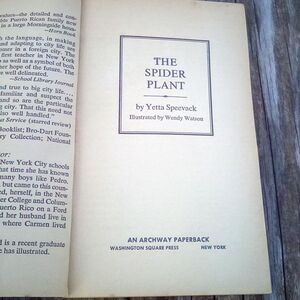 Rare Book titled 'The Spider Plant' by Yetta Speevack. Illustrated by Wendy Watson. Published by Washington Square Press under the Archway imprint. A lesser-known psychological fiction piece with vintage aesthetic appeal. Great for book collectors, vintage decor, or fans of obscure authors.