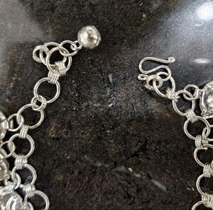 Handcrafted, artisan stylized bear charms on Indian Silver round chain links