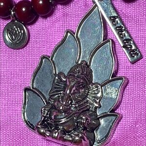 This captivating mala necklace showcases a harmonious blend of silver and red hues, accentuated by a distinctive Ganesha pendant. The intricate design of the pendant adds an element of sophistication, making it a perfect statement piece for any occasion… including your yogic practice 🧘♀️ 📿