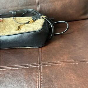 Elevate your style with this chic Yves Saint Laurent crossbody bag. Featuring a sophisticated black and tan design, this bag is perfect for any occasion. The iconic Yves Saint Laurent logo adds a touch of luxury. Does not come with box or dustbag.