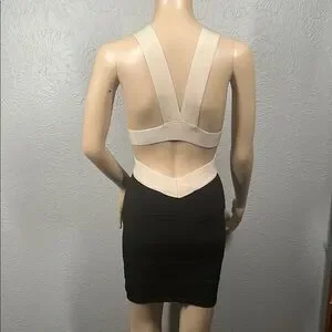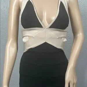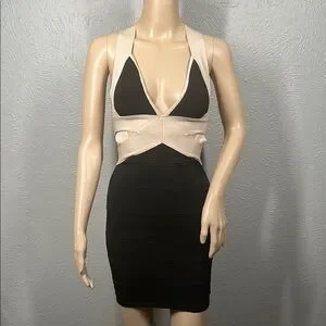 Bebe Elegant Black and Cream Bandage Bodycon Dress Women's Size XS