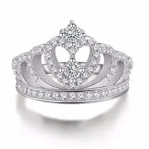 Queen Crown Ring Silver Crystal Rhinestones Copper Princess Ring Size 7