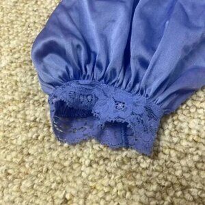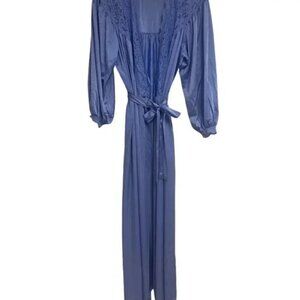 Vintage MISS ELAINE Medium Long WRAP ROBE Purple Blue NYLON Sleeve Lace Sweep