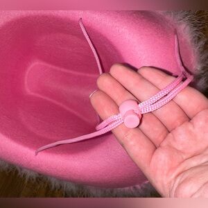 This adorable, hot pink cowgirl hat is the perfect accessory for a girls day out. Featuring a beautiful bright pink color with light pink fur on the rim of the hat this is a gorgeous piece to add to your wardrobe for going out! The hat has an adjustable chin strap so that it could fit every head shape comfortably. You could also tuck it into the hat so that the strap isn’t visible when wearing it. I wore this on a cowgirl bachelorette party and it was a hit!!! 💕💖