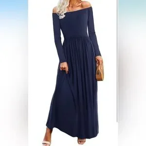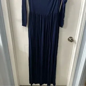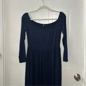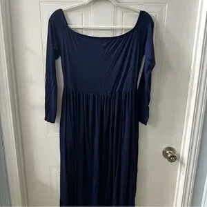 Stretchy Navy Off Shoulder Long Sleeve Maxi Dress Maternity Friendly Size L