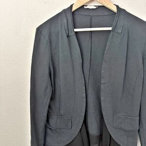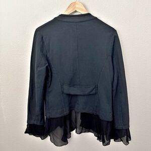 BACI | Black Cotton Blazer Rolled Edge Viscose Chiffon Edges Flowy | Medium