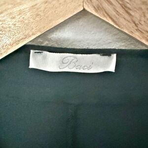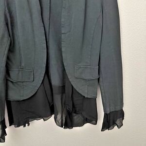 Beautiful, feminine cotton blazer from BACI! Size medium, worn twice. Stretch in material makes this a great jacket for a great fit! Material on edges looks like chiffon and is a viscose material. Retail was over $400.
