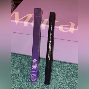 Kevyn Aucoin True Feather Brow Marker Gel Duo in the shade Brunette. This dual-ended product features a marker on one end for drawing hair-like strokes and a clear gel on the other for setting brows. It is designed to shape, define, and set brows for a natural, full finish.