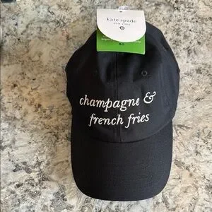 Stylish black cap with 'champagne & french fries' embroidery. Perfect for casual outings. Adorable on!