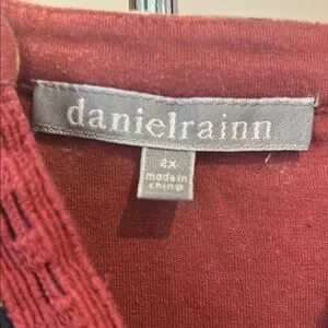 This relaxed blouse by Daniel Rainn features a vibrant red color with elegant pleats and cap sleeves, offering a comfortable yet stylish fit. The light, drapey fabric enhances its flowing silhouette, making it a versatile addition to any wardrobe.
