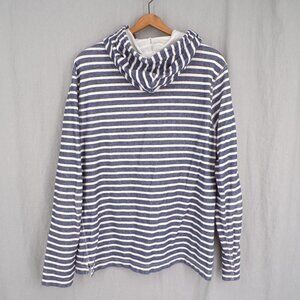J. Crew Vintage Fleece Women's L Pullover Hoodie Blue White Stripe Cozy Cotton
