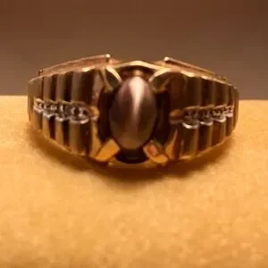 10k Mens Genuine Tiger Eye and 8 Side Diamonds Ring Size 9