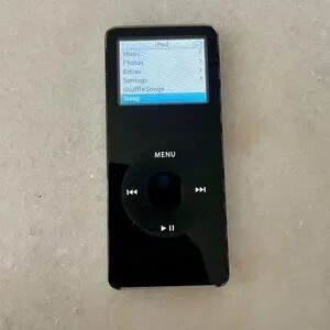 Apple iPod Nano Black A1137. 1st Generation. 1GB. Original Owner. Fully functional and working. Battery intact and healthy. Works with iTunes which was also used to reformat this to factory settings. A blue silicone sleeve is also included for protection. There is a small scuff on the screen (not a crack). There are imperfections on the body of the iPod consistent with the age (see photos); these are cosmetic and do not affect function. Vintage Y2K.