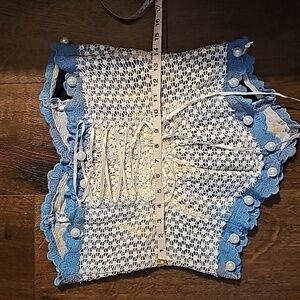 See pictures for exact measurements; blouse is adjustable and elastic on the back. Skirt has elastic waist band