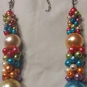 Fun rainbow bead statement necklace & Bright Pink Iridescent Layering Necklace