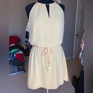 WHBM light yellow Sleeveless Dress, with gold details and tassel tie, size 4
