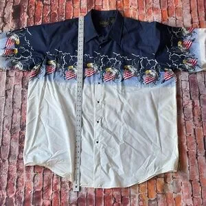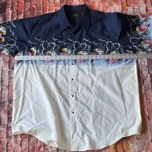 Men’s vintage USA eagle print pearl snap long sleeve cowboy western shirt size 3XL