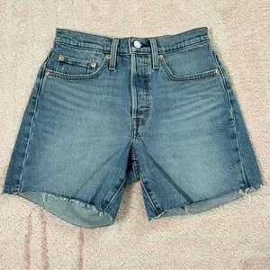 NWOT Levi's 501 Mid Thigh Denim Shorts Button Fly Raw Hem Size 26